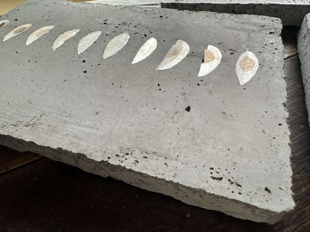 この作品は金属質の箔が使用されており、自然光での展示により光を反射する。つまり箔は見る角度や時間によって光にもなり、影にもなり得る。